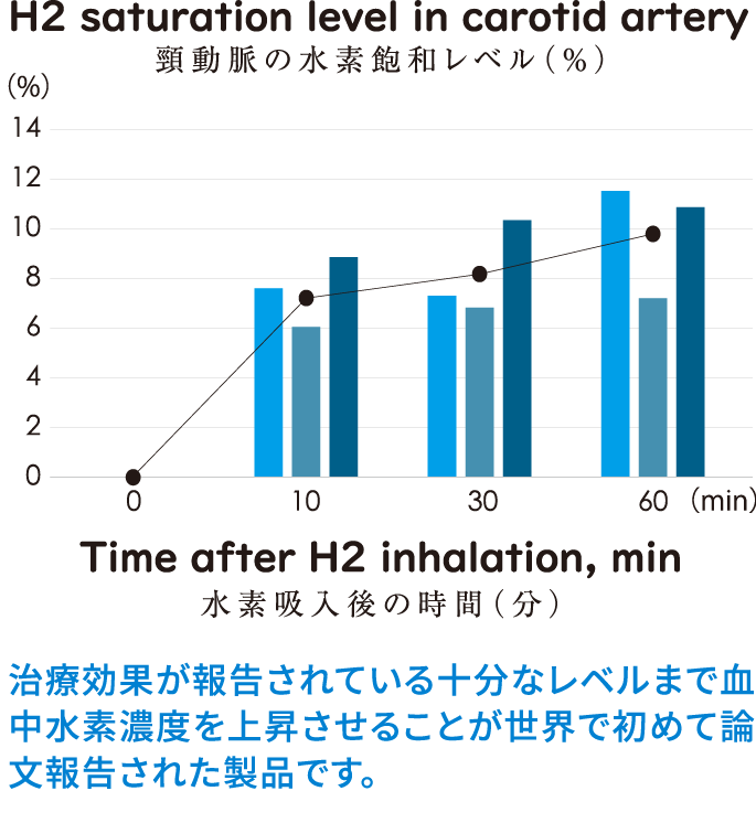 - 「水素ガス吸入時の体内動態(血中水素飽和度)を科学的に証明」